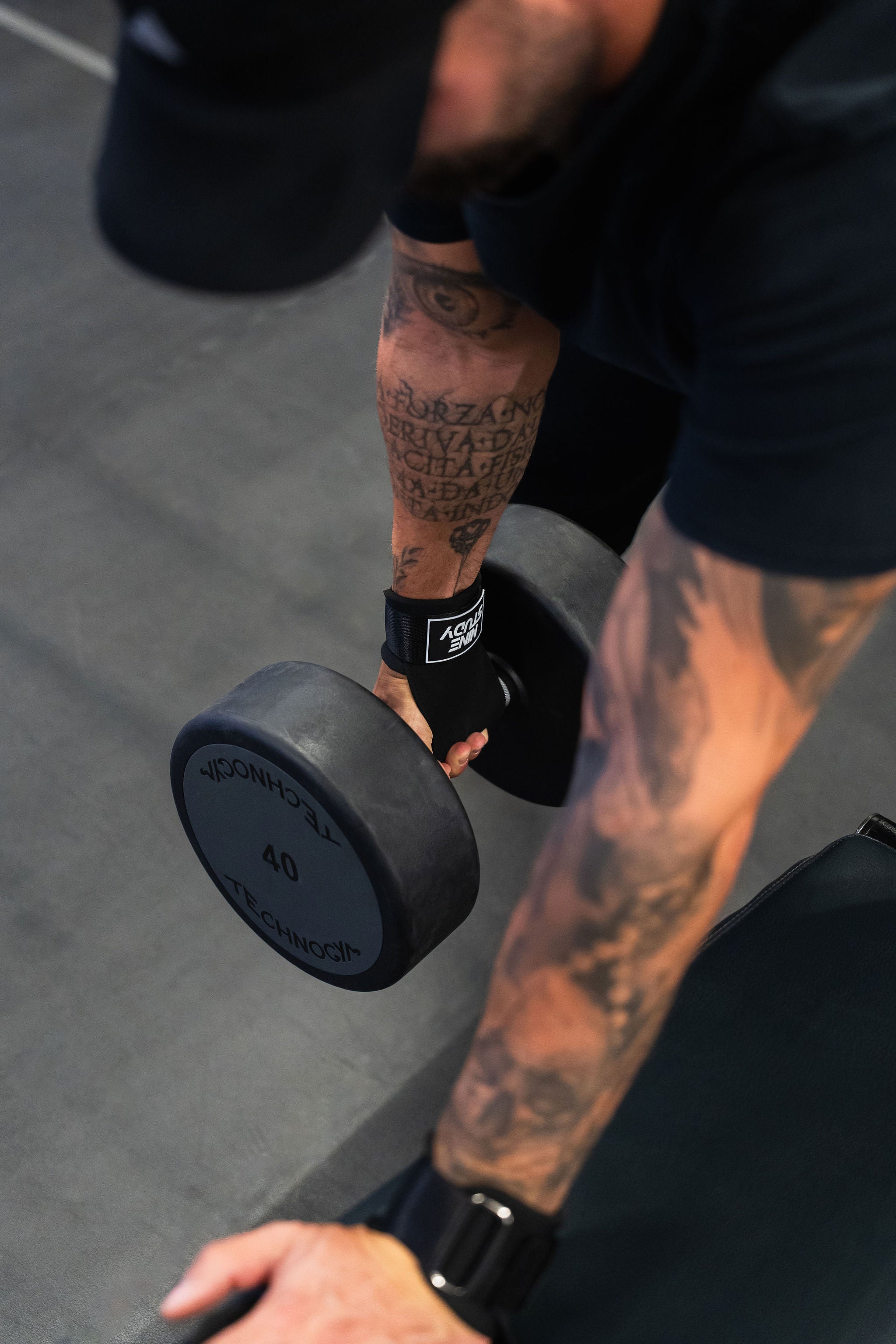 Les sangles s'enroulent autour de la barre ou de l’haltère et serrer. Après 1 ou 2 séances, le geste devient automatique.